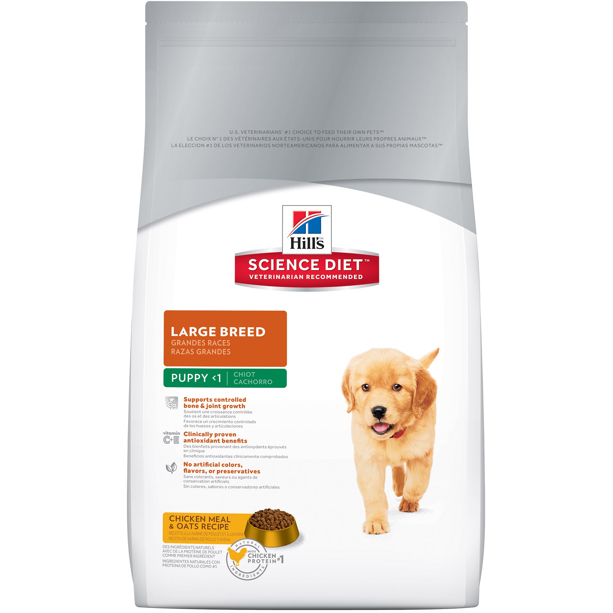 . Hill's Science Diet Large Breed Puppy dry food is specially made with an optimal level of calcium for controlled bone growth, a unique developmental need of large breed puppies. Formulated specifically for large-breed puppies with an optimal level of calcium for controlled bone growth.